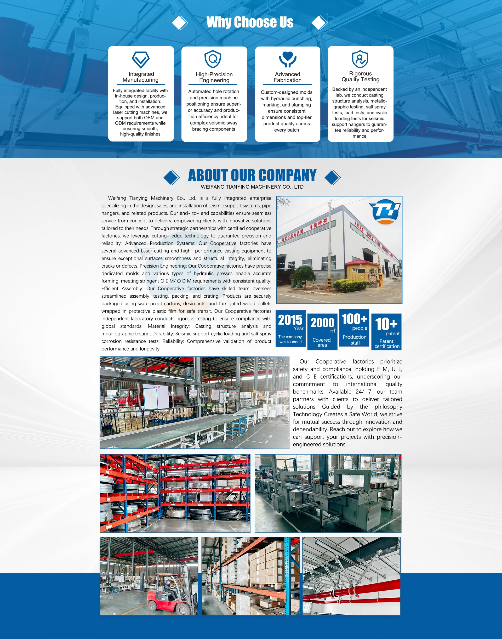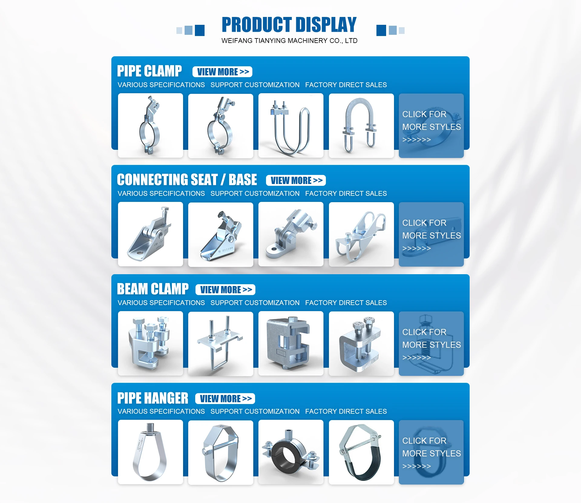 Productos principales:Soporte estabilizador sísmico, acoplamiento, abrazadera de tubería, abrazadera de viga, colgador de tubería